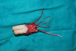 Çoğunlukla travma ama daha az sık olarak da doğuştan olarak el parmaklarında noksanlık oluşabilir. Eğer bu durumda eksik parmak sayısı elin tutma işlevini yerine getiremeyecek sayıda ise ayak parmaklarından ele nakil yapılması gerekebilir. Bu yöntemde el parmaklarına fonksiyonel ve estetik olarak en çok benzeyen ayak parmaklarıyla onarım yapıldığından plastik cerrahinin parmak rekonstrüksiyon metodları içinde en iyi sonucu veren yöntemdir. Sıklık sırasına göre ayaktan ele parmak nakillerinde başparmak ilk sırada gelirken işaret ve uzun parmaklar bu sırayı takip etmektedir. Özellikle başparmak harici diğer parmakları olmayan hastalarda iki ayak parmağı birden nakil edilmesi daha iyi sonuçlar verebilmektedir. Bu şekilde kaba cisimleri kavrama yanında ince kavrama dediğimiz kalem vb. cisimleri tutma işlemini de yapabilmektedir. Yapılan çalışmalar göstermiştir ki erişkin yaşta hastaların bu ameliyatı kabul etme şansı az iken çocukları için daha rahat kabul edebilmektedirler. Benim klinik tecrübem ve bilimsel veriler eşliğinde bu ameliyatlar çok ileri yaş hariç herkes için elin maksimum fonksiyonu ve estetiği için mükemmel sonucu vermektedir. Hastalarımdan gelen en önemli endişe ayak parmakları ele taşınınca yürüme fonksiyonunda kayıp olacağı veya estetik sorunlarla karşılaşacağı endişesidir. Ayağın yürüme fonksiyonunda en önemli iki nokta topuk ve ayak parmak bitimindeki dayanma yüzeyidir. Topuğun sağlam kalması ve ayakta geri kalan diğer parmakların destek noktasının sağlam olmasından dolayı yürüme fonksiyonunda hiçbir şekilde kayıp olmamaktadır. Özellikle tek parmak olmak üzere iki parmak alınan hastalarda bile dışarıdan parmak sayısına çok dikkat edilmediğinde aşikar bir estetik sorun fark edilmemektedir. Burada en önemli nokta kayıplara göre kazancın terazinin kefelerinde değerlendirmektir. Tamamen fonksiyonu olmayan bir ele tırnak yapısı ile hem estetik hemde fonksiyonel olarak normale yakın bir el  elde ederken ayak parmaklarındaki bu estetik kaybın çok da önemli olmadığını düşünmekteyim Aşağıda kıyma makinesine elini kaptırmış çocuk hastamdaki ameliyat sonucunu göreceksiniz. Tamamen fonksiyonsuz bir elde ince ve kaba kavrama hareketler elde edilmiş ve hastam normal yaşantısına dönmüştür. Ayaktaki estetik kayıp ise kabul edilebilir düzeydedir.