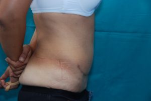 Nerede ise tüm karın germe ameliyatlarıma bu tekniği eklemekteyim. Çünkü karın germe her iki yanda bel çukurunu oluşturmada çoğu zaman yetersiz kalmaktadır. Bu bölgelere liposuction yapıldığında estetik olarak istenen sonuca rahatlıkla ulaşılabilmektedir. karın germe ameliyatı aynı liposuctin gibi kilo verme ameliyatı değildir. Ancak özelikle kilo vermiş hastalarda ise oldukça güzel sonuçlar vermektedirHastanın Ameliyat Öncesi