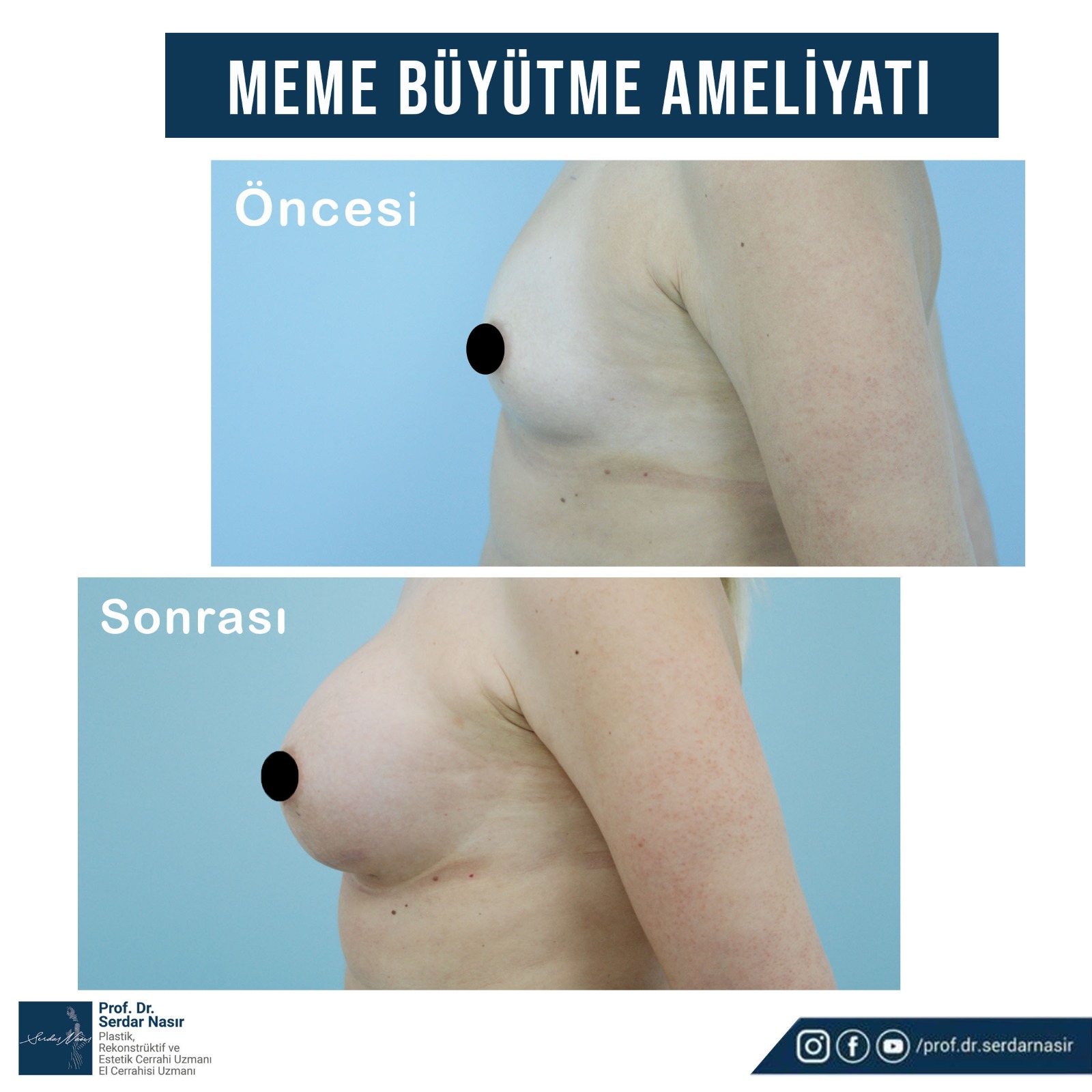 Meme büyütme ile ilgili birçok cerrah kendine uygun metotla protezleri kas veya kılıfı altına veya meme dokusu altına yerleştirmektedir. Her metodun kendine göre avantaj ve dezavantajları vardır. Ama Plastik Cerrahi sürekli bir gelişim içindedir ve bu süreç içerisinde cerrahın tercihleri de ilerleyen tecrübe ve bilgi ile değişmektedir. Ama en önemli faktör hastanın memesinin muayene sonucu bulgularıdır ki bunun sonucunda hem cerrahi plan hem de protezin şekli değişebilir. Ancak kendi tecrübelerimi ve bilimsel toplantılardan elde ettiğim bilgilerle birleştirince, şu an için ben birçok hastanın muayenesi sonucu çıkan bulgularla, kas altına dual plan dediğimiz şekilde anatomik (damla) koheziv jel protezlerin yerleştirilmesi ile elde edilecek meme büyütmesinin iyi sonuçlar verdiğini düşünüyorum. Ancak çok sık olmamakla beraber hastaya göre meme dokusu altına silikon protez yerleştirme şeklinde de meme büyütme ameliyatları yapılabilir. Protezi, benim için oldukça rahatlık sağlayan meme  alt kıvrımına altına yaptığım kesi ile yerleştiriyorum. Ancak hastanın meme başı çevresinden yerleştirilsin gibi istekleri olursa, bu tekniğin avantaj ve dezavantajlarını da anlatarak bu yolu da tercih ediyorum.