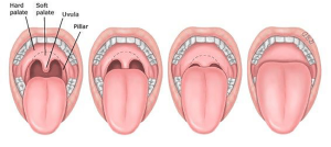 Ağızdan hava yolunun daralmasına neden olan yumuşak damak ve dilin sarkmasında ise tedavi metodu bu bölgenin kısaltılmasıdır. Bu ameliyatta yumuşak damaktan bir miktar mukoza (ağız içerisini döşeyen doku) çıkartılır. Küçük dil uzunsa kısaltılır. Çıkartılan doku kısmı kapatıldığında ve küçük dil kısaltıldığında hava yolu açılmış olur. Sonraki dönem bir miktar ağrılı olmaktadır. Bu dönem ilk 3 gün hasta sadece berrak sıvı gıdalarla beslenir takip eden 3 gün çorba gibi yine sıvı gıdalar ancak berrak olamayan gıdalara başlar. Ameliyattan sonra 6. günden itibaren 10. güne kadar bazen 15. güne kadar hastanın püre şeklinde ezilmiş veya kıyılmış gıdalarla beslenmesi istenir. Hastaya ağrı kontrolü için ağrı kesiciler verilir. Ve hastaya sıkı bir şekilde ağız hijyeni önerilerek ağız gargaraları ve ağızın lokal olarak temizlenmesi önerilir. Bu ameliyattan sonra hastalar özellikle tıkayıcı (obstrüktif) tip apne ise ve yumuşak damak ile küçük dilin uzunluğundan kaynaklanıyorsa tamamen tedavi olurlar. Bazı hastalarda tıkayıcı tip apnenin yanında merkezi sinir sistemi apne de olmaktadır. Ancak tıkayıcı tip apne ortadan kaldırıldığı için uyku kalitesi yine de yükselecektir.